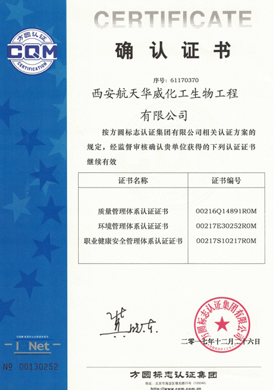 西安航天華威化工生物工程有限公司擁有全面壓力容器及非標(biāo)準(zhǔn)設(shè)備設(shè)計(jì)、制造的各項(xiàng)認(rèn)證資格,確保向客戶提供符合各項(xiàng)標(biāo)準(zhǔn)的產(chǎn)品。